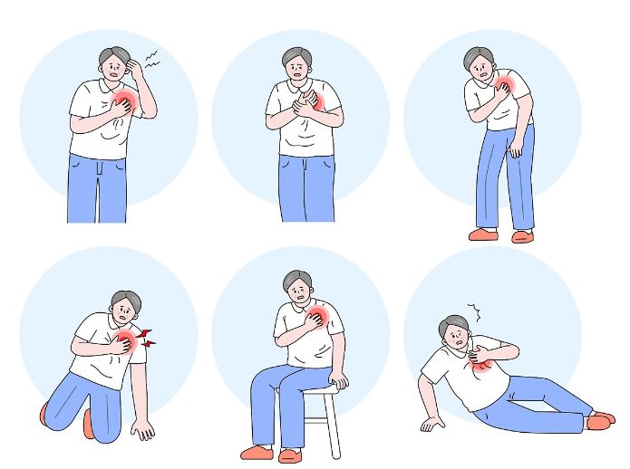 식은땀이 흐를 정도로 극심한 가슴 통증이 갑자기 시작돼 십여분 이상 지속되는 경우 의심할 수 있습니다.