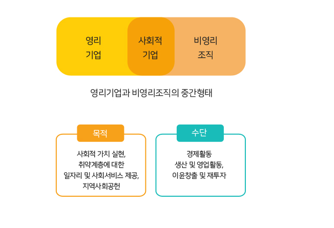 - 조직 형태가 회사인 경우 배분 가능한 이윤의 2/3 이상을 사회적 목적을 위해 재투자할 것