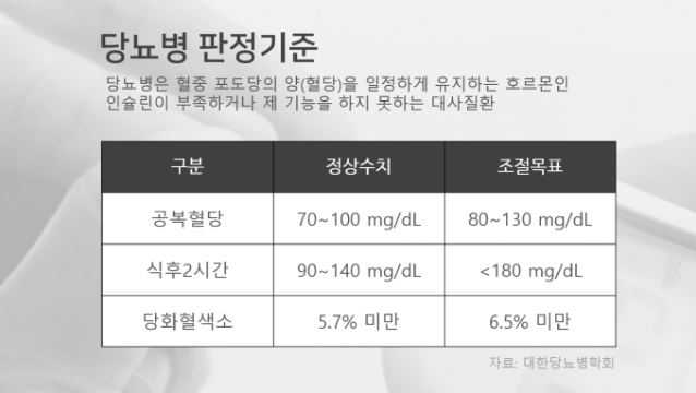 오스트리아 지그문트프로이트대 의대 연구팀은 무작위로 뽑은 6~80세 1만1014명을 대상으로 당뇨병 발생 유무와 그에 따른 합병증 유무와 종류 등을 조사했다. 그 결과 참가자의 약 20.2%가 당뇨병 전증, 5.4%가 당뇨병 환자였다. 건강한 사람의 혈당은 공복시 100mg/dL 미만이다. 만약 100~125mg/dL이면 당뇨병 전증(공복혈당장애)으로, 126mg/dL 이상이면 당뇨병으로 진단한다. 당뇨병 전증인 사람은 추후 당뇨병으로 발전할 가능성이 높다.