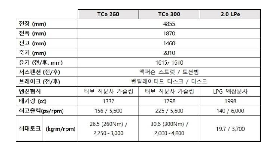 새로운 파워 트레인이 탑재된 르노삼성 sm6 페이스리프트 모델은 기존 모델에 비해 주행성능을 높이고, 리어 서스펜션 개선을 통해 승차감을 업그레이드 한 것으로 알려졌습니다. TCe260과 TCe300 가솔린 터보, LPe로 구성될 계획이며 판매되는 가격은 2401만 원부터 시작됩니다.