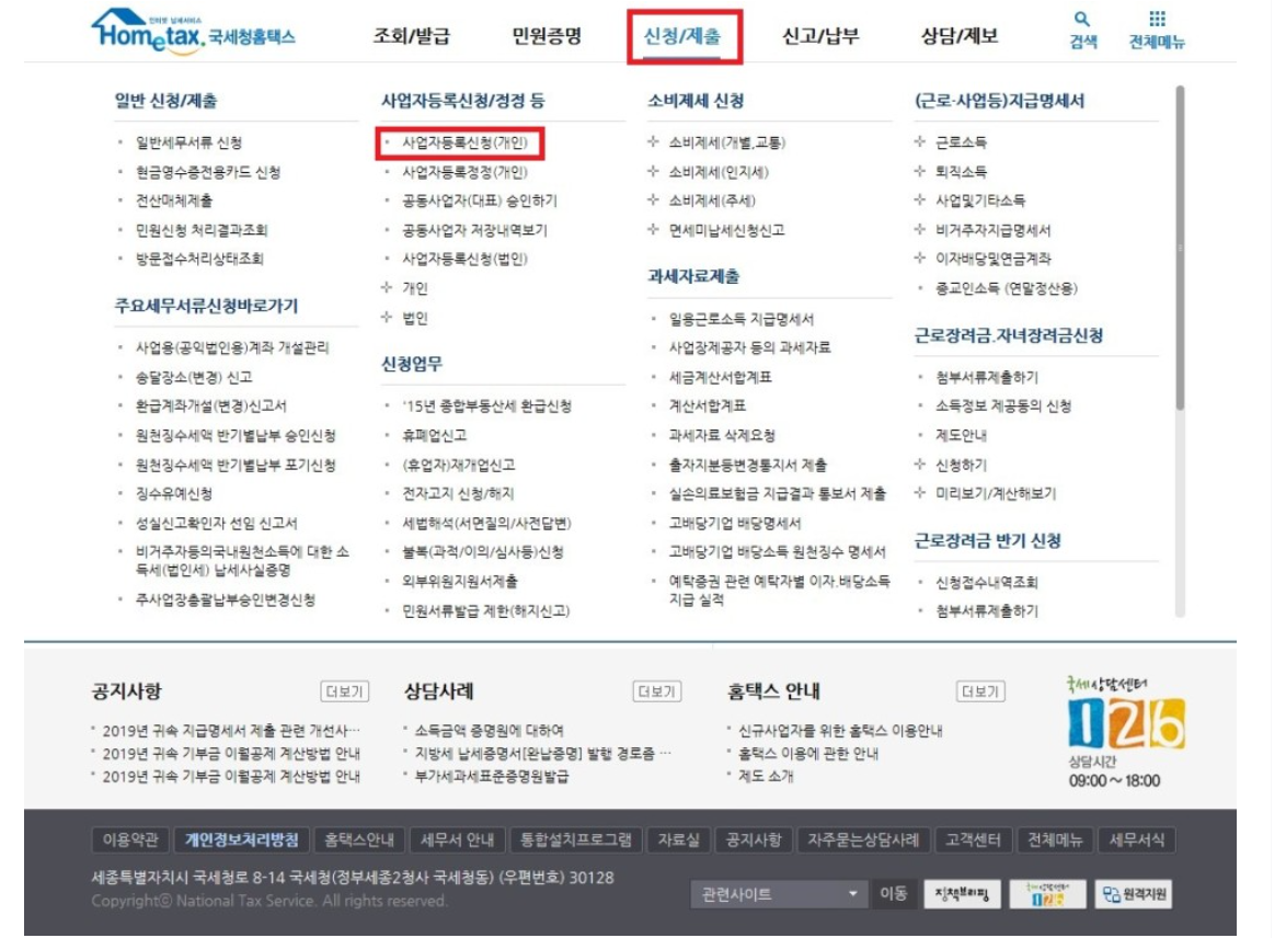 마지막으로 관할 세무서에서 사업자등록 신청을 합니다.
