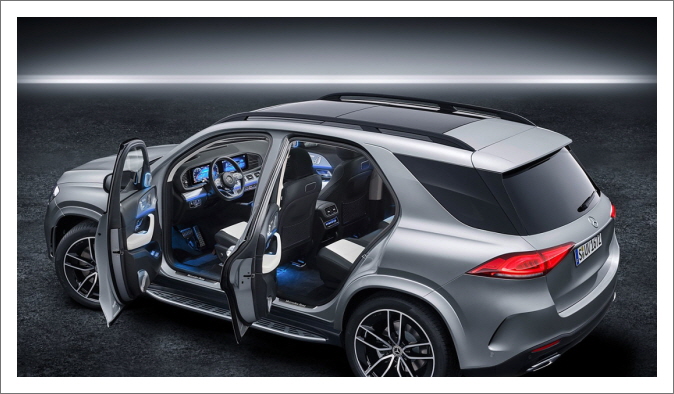 #더뉴GLE 실내는 SUV의 이미지를 지키면서 세단의 럭셔리하고 우아한 분위기를 풍깁니다. 특히 중앙 모니터 좌, 우에 자리 잡았던 송풍구는 형제 모델을 따라 모니터 아래에 위치합니다. 계기판과 중앙 디스플레이는 모두 12.3인치로 한 개의 베젤로 이었고, 또한 앰비언트 라이트는 개인 취향이나 기분에 따라 64개 색상 중에서 선택할 수 있습니다.