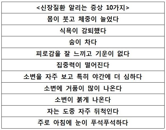 신장은 한 번 손상되면 회복이 불가능하다. 따라서 평소에 신장 질환을 예방하기 위해 도움이 되는 생활습관을 유지하도록 해야 한다.