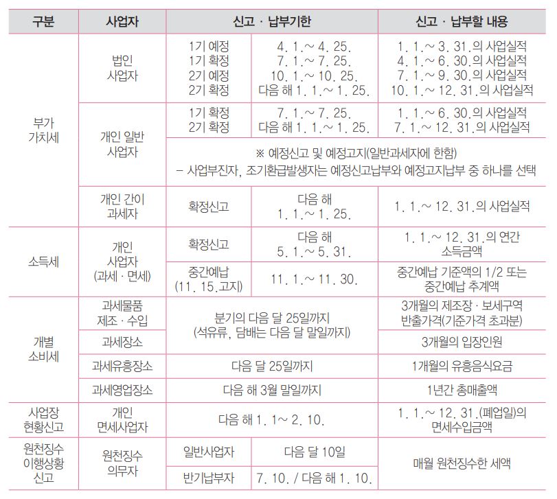 ◇ 사업자는 연간 소득에 대하여 소득세를 신고하고 납부하여야 합니다.