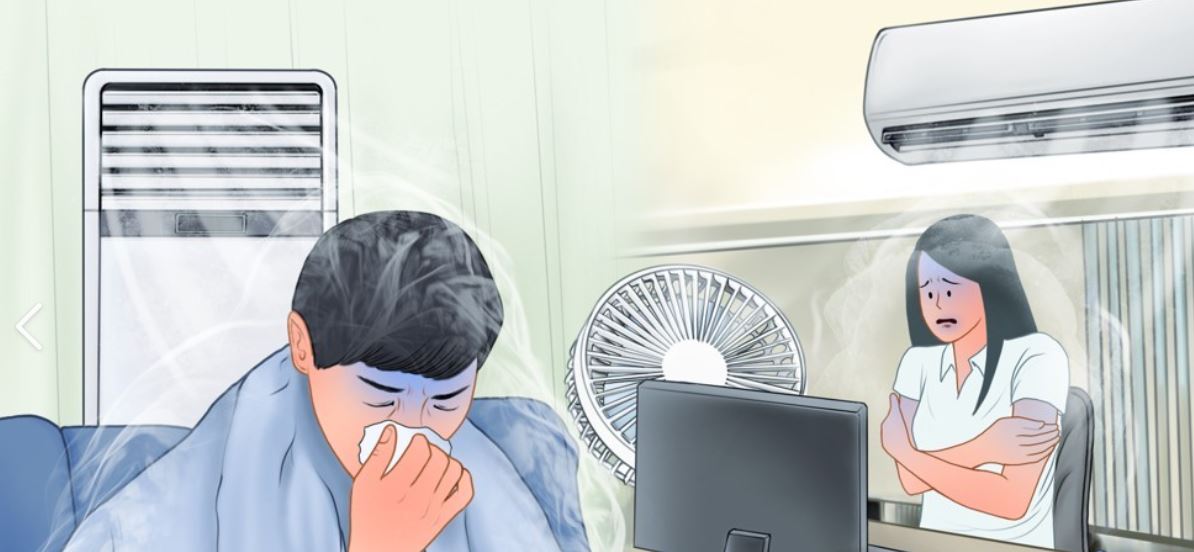 냉방을 하는 실내에 오랜 시간 머무르는 경우 가벼운 감기, 두통, 신경통,소화불량의 증상을 보일 수 있으며 여성의 경우 생리 불순의 등의 증상이 나타날 수 있는데요.