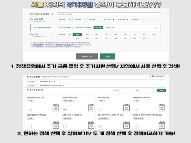 예를 들어 서울 지역의 청년 주거지원 정책을 알아본다고 해볼까요?