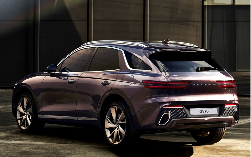 GV70 전면부는 제네시스 로고의 방패에서 영감을 받은 오각형 ‘크레스트 그릴’이 헤드램프보다 낮게 위치해 공격적인 이미지를 보인다. 두 줄 디자인의 ‘쿼드램프’는 속도감과 역동성을 표현했다. 범퍼 하단에 엔진 하부 보호용 덮개(스키드 플레이트)를 적용해 SUV의 강인한 이미지를 연출했다. G80, GV80 등 앞서 출시한 제네시스 형제들과 흡사한 패밀리룩을 갖춘 것이다.