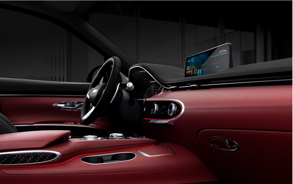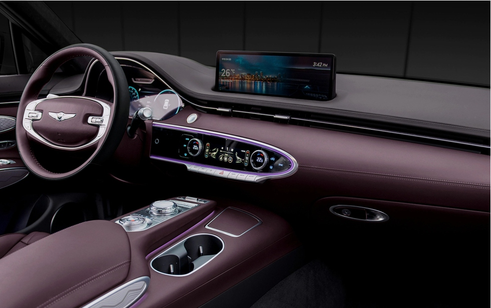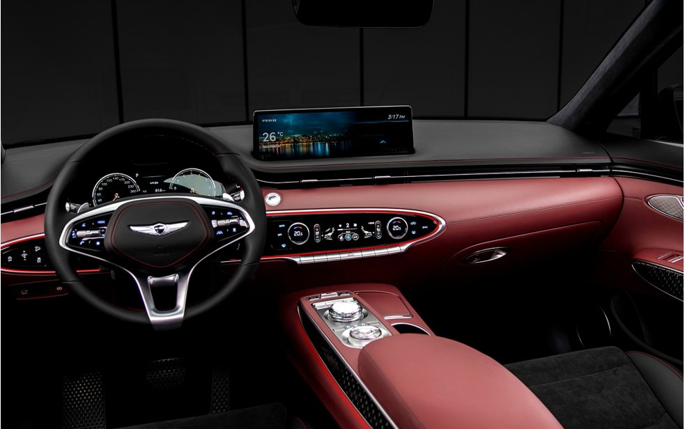 내장 디자인은 운전자 중심의 실내 구조로 설계됐고, 탑승객의 안락감과 편의성을 극대화했다는 게 회사 측 설명이다. 곳곳에 타원형 요소를 사용하고, 무드 조명을 적용해 GV70만의 개성을 살렸다. 또 얇은 형태의 송풍구와 LCD 터치패드를 확대 적용해 운전자 편의성을 극대화했다.