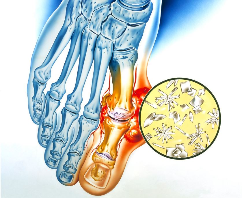 축척된 요산은 관절에 결정형태로 뭉쳐져 관절에 염증과 통증을 유발하는데