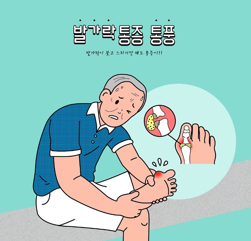 바람만 스쳐도 아프다 질환 통풍은 주로 엄지 발 근처 관절부위에서