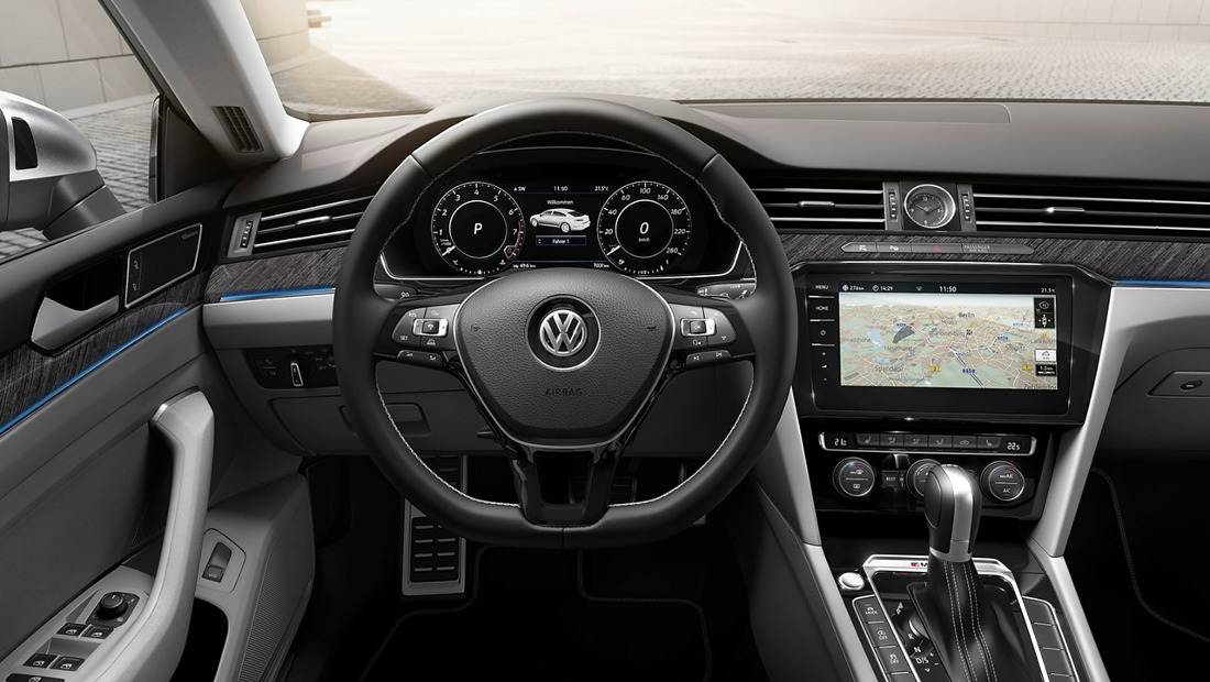 모듈러 조립 매트릭스(MQB) 플랫폼을 기반으로 하는 아테온은 전면 가로 배치형 엔진과 바깥쪽으로 넓게 위치한 전, 후면의 액슬로 인해 4,860mm의 전장에 비해 긴 2,840mm의 휠베이스를 지녔습니다. 늘어난 루프라인은 쿠페 스타일 디자인과 결합되었으며 넓은 리어 해치는 아테온에게 일반적인 세단보다 여유로운 공간과 유연성을 제공합니다.