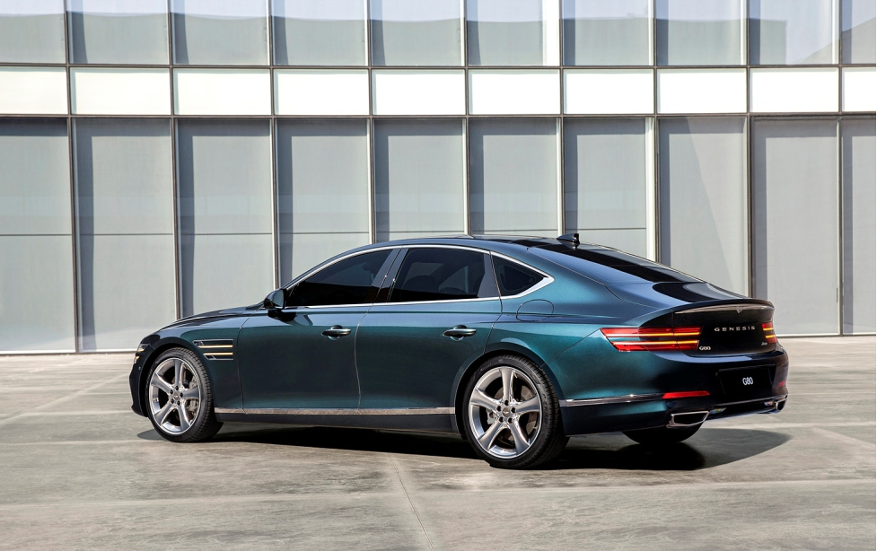 새롭게 디자인된 트렁크 게이트와 제네시스 레터링 등 두 라인의 조명이 들어간 리어 컴비네이션 램프를 리어 디자인에 추가해 브랜드 아이덴티티를 더욱 선명하게 표현했습니다. 스포티한 바디 키트도 매력적인 포트로 자리 잡았습니다.