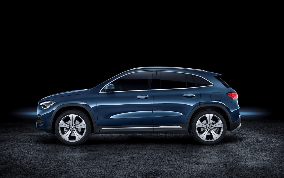 사이드 뷰는 첫 GLA와 마찬가지로 깔끔하고 우아한 실루엣을 뽐냅니다. 이전보다 간결하고 매끄럽게 광택이 나는 그래픽으로 차체 하부에 넓은 외피 가드로 SUV의 정체성을 선명하게 드러냅니다.