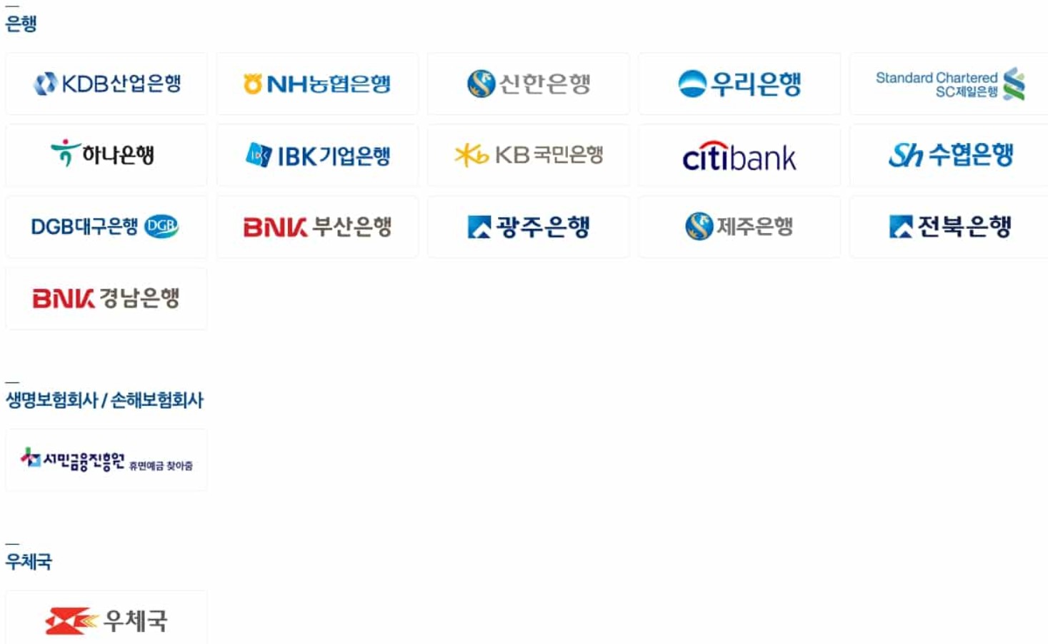 휴면계좌 조회 시스템으로 조회가 가능한 금융기업은 다음과 같습니다.