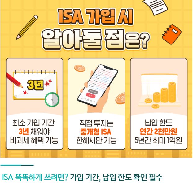 ISA의 비과세 혜택을 받기 위해서는 최소 가입 기간 3년을 채워야 합니다.