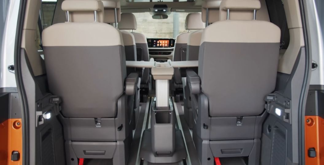 T7 멀티밴은 수송 능력도 향상됐다. 폭스바겐은 기존의 핸드브레이크 및 기어 셀렉터를 비롯해 센터 콘솔이 제거돼,