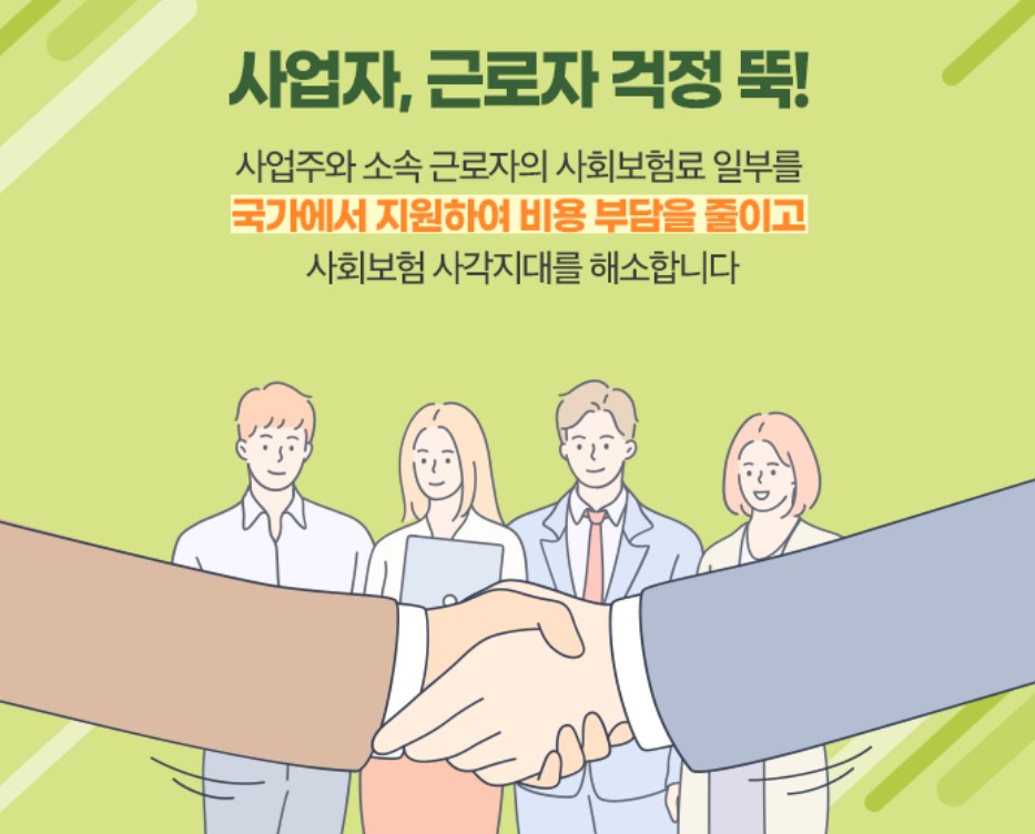 한마디로 말해서 4대 보험 중 고용보험과 국민연금 일부를 국가에서 지원해준다는 사업입니다.