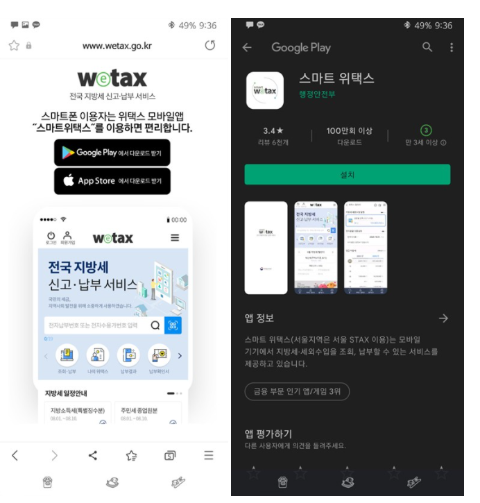 우선 위택스는 별도의 모바일 페이지가 없어서 네이버를 통해 위택스를 접속하면
