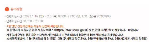 다만, 2월 3일까지 납부하지 않으면 신고 효력이 상실되어 이후 정기분으로 고지서가 발부되므로