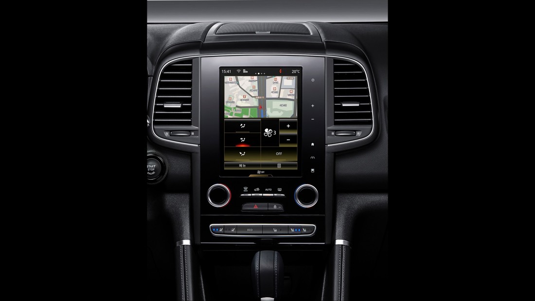 공조기 조작부가 중앙 디스플레이 화면 하단에 고정돼 위치합니다.